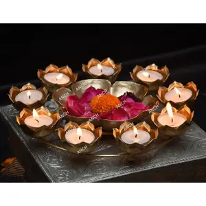 ANCH Round Rangoli 9 Diyas Stand with...