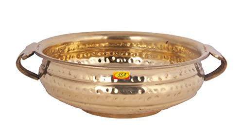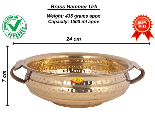 • Brass Hammered Urli Specification:- Material-Brass Color-Gold Weight-436 grams Volume-1500 ML Diameter- 20.5 cm Breadth-24 cm Height-7 cm
