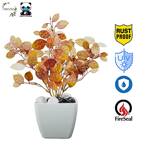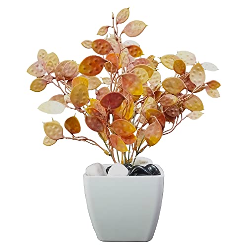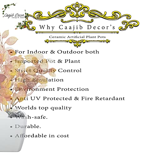Caajib Decor's Artificial Orange Papad Leave Plants in Imported Brazilian White Plastic Pot with Stone for Home Office & Dining Room Decoration | Fire Retardant & UV Protected