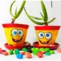 Karru Krafft Terracotta Succulent/ Cactus Indoor Planter for Living Room Dcor/ Bed Room Decor Terracotta Home & Decorative Planter for Home Decor (10.16cm x 7.62cm x7.12 cmYellow-Spangee)