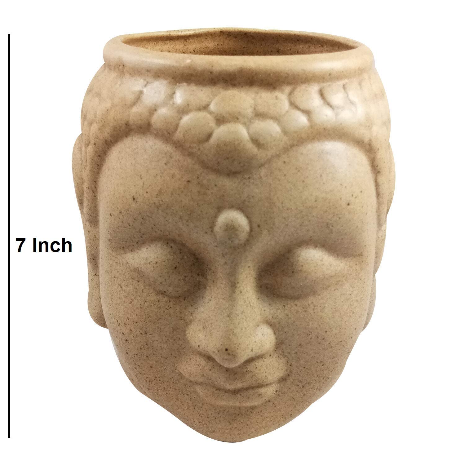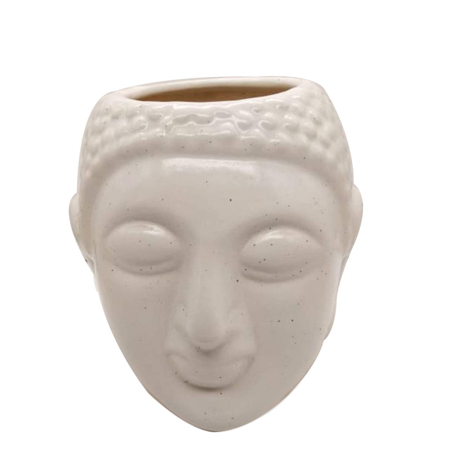 KHURJA POTTERY Ceramic Planter Gautam Buddha Shape Flower Pot (White) 1 Piece