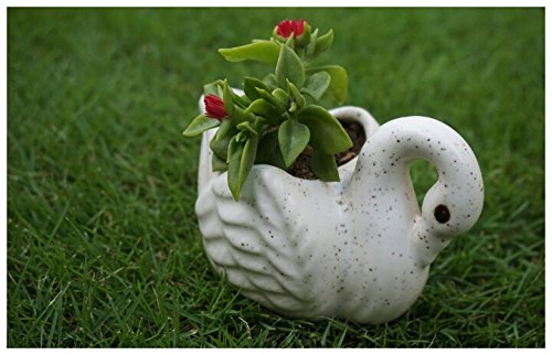 KHURJA POTTERY White Ceramic Mini Planter in Shape of Small Swan (Set of 2)