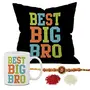 Christmas Vibes Best Big Bro Rakhi Gift Hamper Combo - 4pc (1 Cushion 1 Mug 1 Om Rakhi and Roli Chawal) Rakhi Gift for Brother Rakshabandhan Gift Rakhi Gift for Bhai