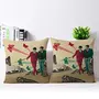 The Purple Tree Ethnic Printed Jute Cushion Covers (16x16 inch, Pack of 2) Cushion Covers, Jute Cushion Covers, Sofa Cushion Covers, Diwali Cushion Cover LR267