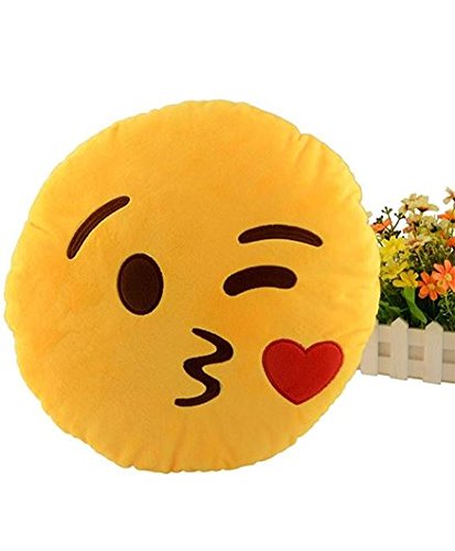 The Purple Tree Kiss Emoji Cushion Pillow- (1 pc) Yellow
