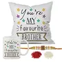 Christmas Vibes My Favorite Brother Rakhi Gift Hamper Combo - 4pc (1 Cushion 1 Mug 1 Pearl Rakhi and Roli Chawal) Rakhi Gift for Brother Rakshabandhan Gift Rakhi Gift for Bhai
