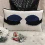 The Purple Tree Cute Sequin Eyelash Polyester and Polyester Blend Pillow Cushion (12X18 Inches, Blue)