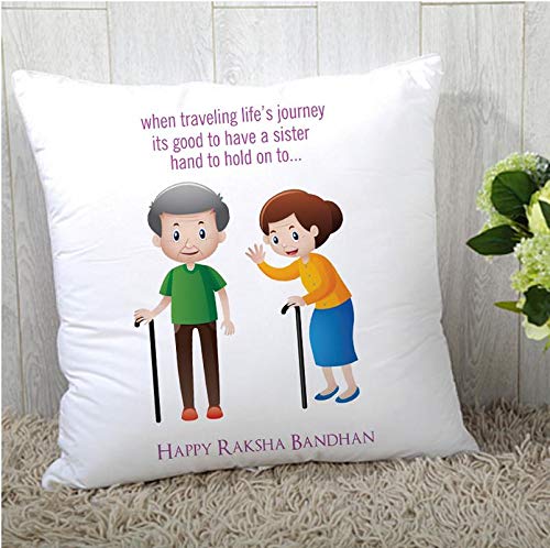 The Purple Tree Rakshabandhan Gift Printed Rakhi Cushion (12x12) - 1 pc, Rakhi Gift, Rakhi Gifts for Sister, Rakshabandhan Gift, Rakhi Gift for Brother