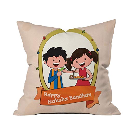 The Purple Tree Rakshabandhan Gift Printed Rakhi Cushion (12x12) - 1 pc, Rakhi Gift, Rakhi Gifts for Sister, Rakshabandhan Gift, Rakhi Gift for Brother