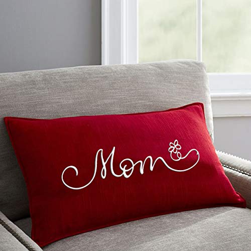 Beautiful Red Velvet Cushion Pillow With Mom Embroidered In White Is The Perfect Gift For Your Mommy Dearest.'Mom' Embroidery Cushion