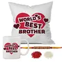 Christmas Vibes World's Best Brother Rakhi Gift Hamper Combo - 4pc (1 Cushion 1 Mug 1 AD Rakhi and Roli Chawal) Rakhi Gift for Brother Rakshabandhan Gift Rakhi Gift for Bhai