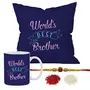 Christmas Vibes Worlds Best Brother Rakhi Gift Hamper Combo - 4pc (1 Cushion 1 Mug 1 Rudraksh Rakhi and Roli Chawal) Rakhi Gift for Brother Rakshabandhan Gift Rakhi Gift for Bhai