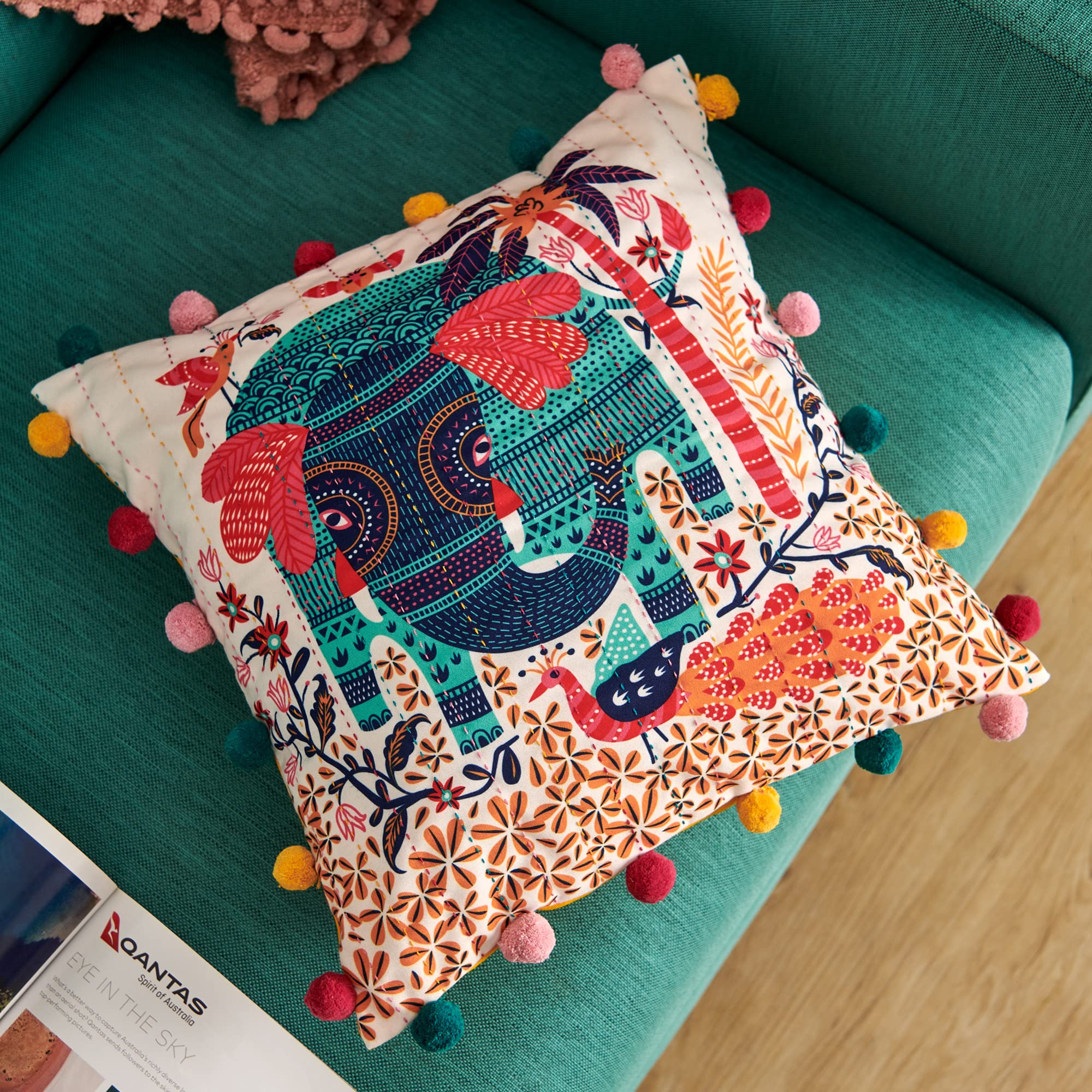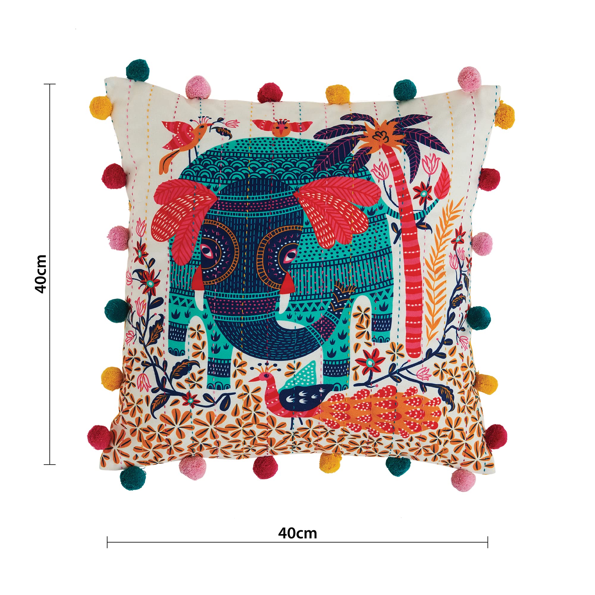 Chumbak Galle Elephant 16" Gondh Cushion Cover