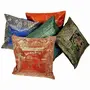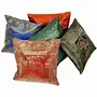 This multicolour 5 piece cushion cover set is made from jacquard silk cloth. It is graced with brocade work and golden elephant embroidery in the center. The elephant pattern in traditional sanganeri design makes it look elegant. It is also decorated with assorted brocade laces on each cover adding shimmer to it. The golden zari work makes it look royal. These traditional and ethnic creations are the specialty of Rajasthan.