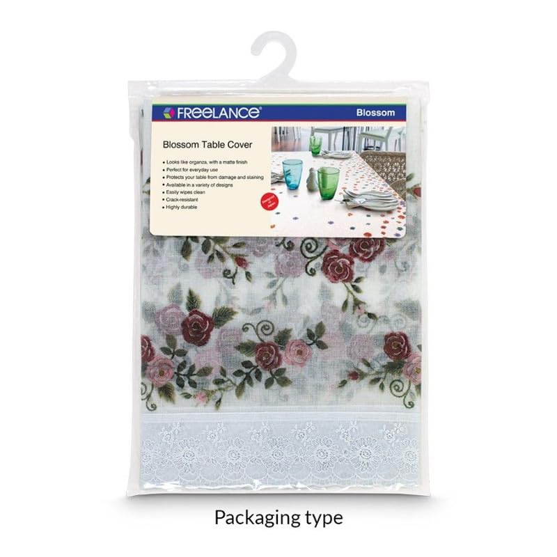 Freelance PVC Blossom Dining Table Cover Cloth Tablecloth Waterproof Protector 8-10 Seater 60 X 108 inches Rectangle (with White-Laced Edges) Product of Meiwa Japan