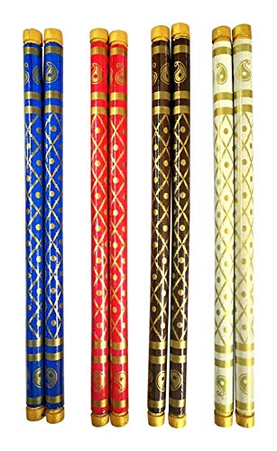 Multicolor Heavy Wooden Sankheda Dandiya Garba Sticks 14 Inches Big Size Pack of 4 Pair