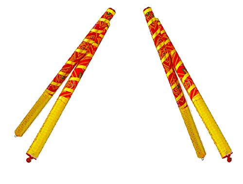 Wooden Bandhni Dandiya Garba Sticks in Pair of Small and Big Size Dandiya - Total 4 Sticks