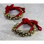 From the house of eSplanade - Brass Ghungroo for professional dancers and learners. This is a single line red cloth ghungroos pair with each having 25 ghungroos stitched securely. These ghungroos are designed to provide a good fit and comfort. The bells resonate with dance movements and provide harmonious sound.
