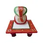 Bring home this precious Lord Ganesha on Floral Chowki decorative and create an auspicious aura in your living space. Made of marble it has been hand enameled using rich red and golden colors. It serves as a great gift especially around religious celebrations and festivities. Each Ganesh Chowki is diligently handcrafted by skilled artisans from the house of RAJASTHANI MARBLE HANDICRAFTS using various traditional techniques.