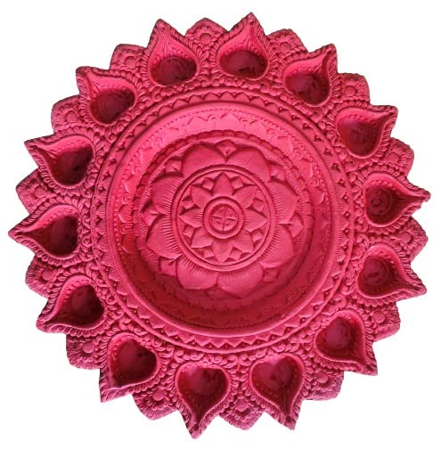 DHOKRA CRAFT Diwali Deepawali handmade clay Deepak Diya lamp oil mitti Diya diyas decoration mud BIG gift terracotta traditional pooja festival designer beautiful handcrafted height 2cm diya 29CM