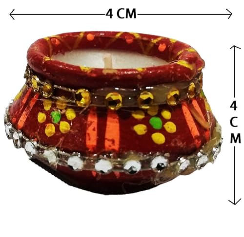 FESTIVE BLESSINGS Multicolored Mitti Diya for Diwali | Terracotta matki diya with Wax Filled | Matki Diya with Wax Filled (Set of 12) | Diya for Puja | Designer Diye | Mitti Ke Deepak (Kanchan Kalash)
