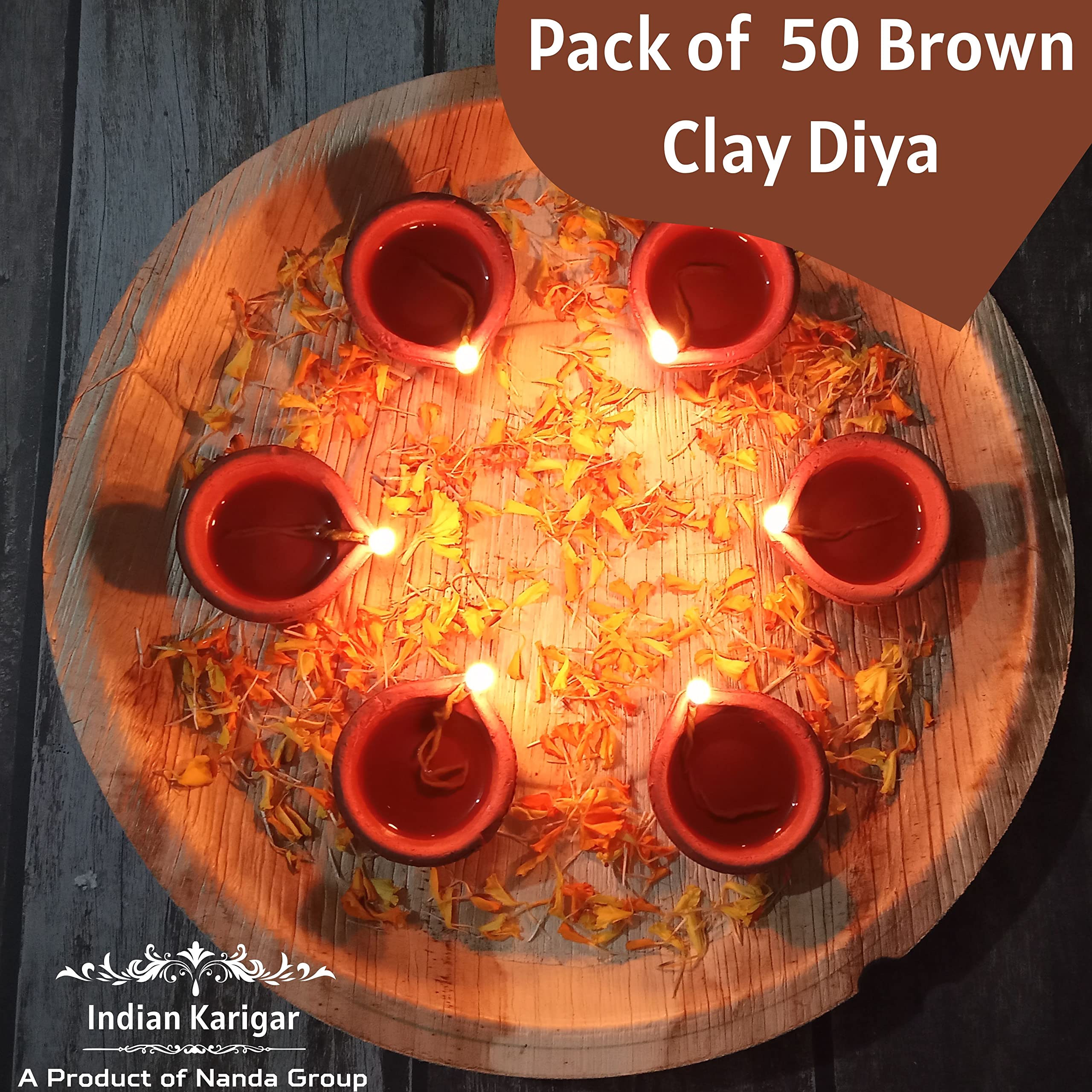 HomeHomeSpiritualEco-Friendly DiyaIndian Karigar 50 Diwali Diyas Navratri Traditional Diyas for Diwali Decor Handmade Clay Diya for Diwali Decoration Items for Home Decor Terracotta Diyas for Diwali Lights Deepak Deepam Lamp 50 Brown