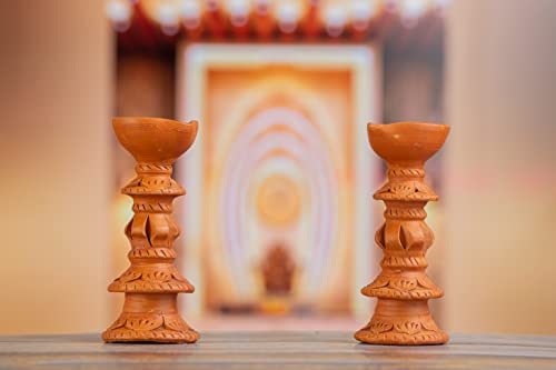 This diya will enhance your home decor and holiday festivities. Traditional handmade earthen clay diyas a splash of colour to your home. Use them instead of decorative lights to brighten your home during the festival. Made of clay natural colours no artificial colours added 100% environmentally friendly. A one-of-a-kind terracotta diya for your puja room. Handmade item with a unique design. A fantastic option for everyday use at home. The product is washable and comes in a natural terracotta colour. The design can protect the flame from the elements.