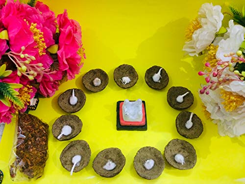 Create a meditative and peaceful ambiance in your puja room with this Hawan Kit. The combo pack contains 11 diyas made up of aromatic herbs and panchagavya- Cow Dung Cow Urine Milk Curd and Ghee 1 Hawan Vedi/Stand/Hawan Kund Hawan Samagri containing GoogalKapoorTulsiHerbsetc and 11 Diya Batti. It creates a positive environment and saves us from negative energy. It is scientifically proven that the cow dung purifies the air and also has anti-pollutant and anti-radiation qualities in the environment.Also used in Agnihotra puja. Also Commonly used during Indian festive occasions like Diwali and Navratris.