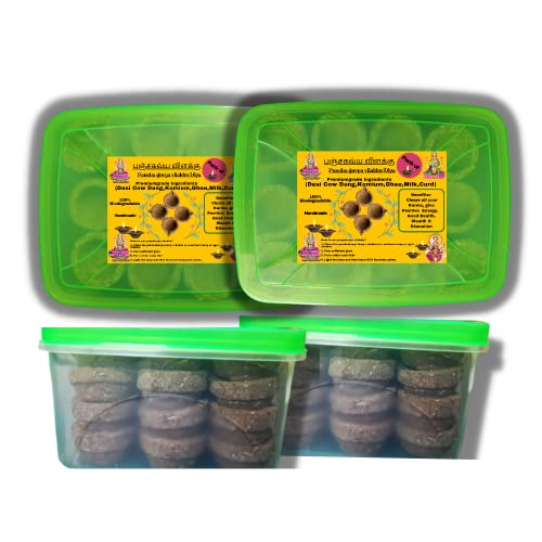 About Panchagavya Deepam/Diya:- The Panchagavya Diyas are made from 100% pure premium grade ingredients.The fixings utilized in the Panchagavya Diyas are cow dung cow urine milk curd and ghee. These are completely natural organic and biodegradable. Ideal for Navaratri Diwali Karthigai Deepam. Panchgvya Diya is absolutely synthetic free or other hurtful synthetic substances It Aroma completely natural when consumed and has no additional fragrance . Benefits:- Panchagavya Diyas creates a purenutritional and medicinal atmosphere.produces the amazing amount of advantageous gases that produces positive energy good health and wealth and battle contamination actually. If we do pooja yagasalai it will require lot of money instead we can light panjakavya vilakku/Diya/Deepam with gheel to get rid of all negative energyeliminate the harmful air around his consuming spot.Use it daily in your prayers or use on special occasions. 100% Eco-friendly:- The left-over ashes can be used as organic manure for plants and for improving the soil fertility as welladdition it is a natural mosquito repellent. How to use panchagavya Diya/Deepam/Vilakku:- Keep on a protected Metal Plate. Pour Ghee (or) Oil inside the Light and cotton Wick to be put inside the ghee. Use a plate or Dhoopakaal under the Panjakavya Diya/Deepam/Vilakku the shell also burns out. If a plate or any other base is not used then the surface may get a black stain Note :- Ghee and Cotton Wick is not included.