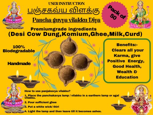 Panchagavya Deepam/Vilakku/Gobar Diya/Pooja products |Pack of (50)| Made of 5 Natural Elements - Cow Dung, Cow Urine, Milk, Curd and Ghee for Daily Pooja,Navaratri, Festivals,Diwali