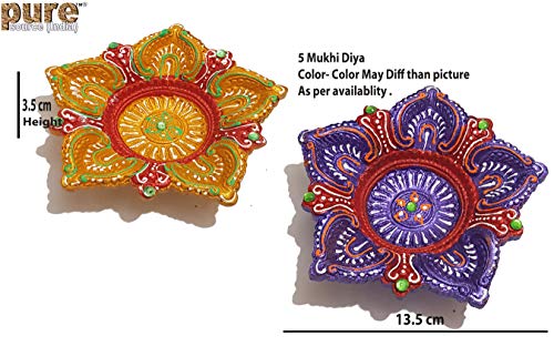Pure Source India Terracotta, Decorative, 5 Mukhi diyas, Suitable for puja & Festival (Set of 2 Pcs)