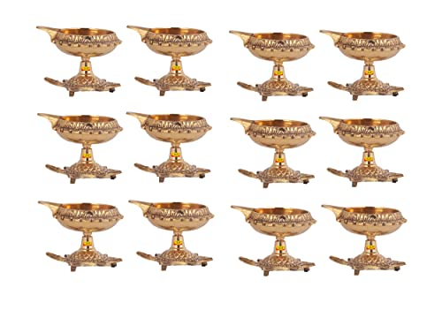 SHIV SHAKTI ARTS® Pure Brass Kuber Diya with Turtle Base (133 Gram) Designer Engraved Diya Deepak for 2022 Navrati Diwali Poojan Decorative Gift.- 12 Piece