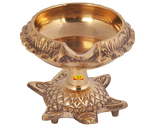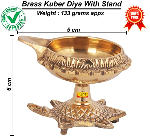• Pure Brass Kuber Diya With Turtle Base = Dimension : Diya = 6 cm x 5 cm (Height x Width) Weight - 133 Gram Each Approx.