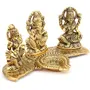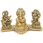 DHOKRA CRAFT Laxmi Ganesha Saraswati with Diya On Leaf Statue Idol Murti in Metal Decorative Showpiece - 20 cm (Metal Gold)