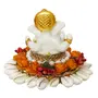 HomeHomeSpiritualIdolseCraftIndia Polyresin Lord Ganesha Idol On Shells and Orange Floral Decorative Handcrafted Plate - Exquisite Hindu God Statue for Home Temple Office Car Dashboard - Gift for Housewarming Birthday