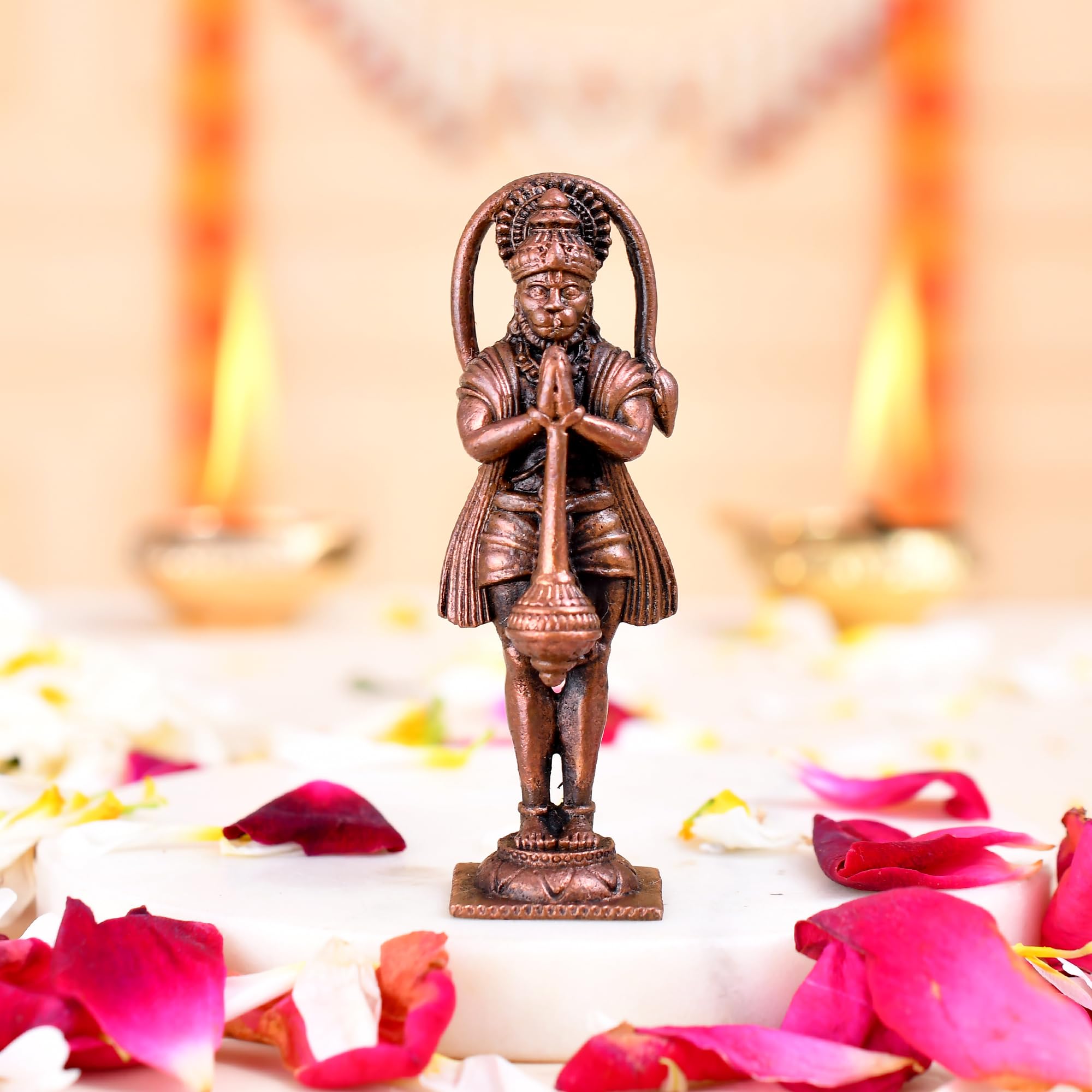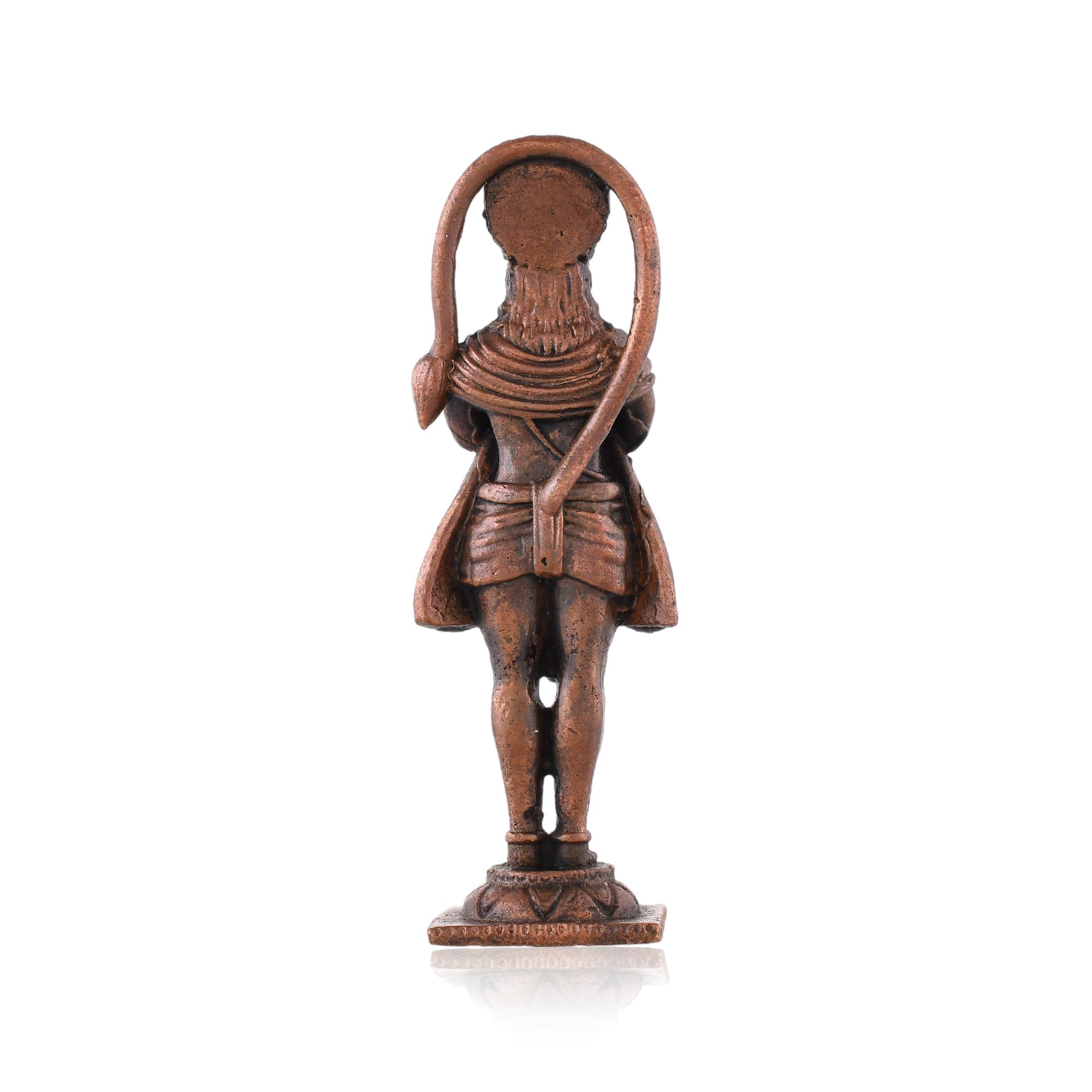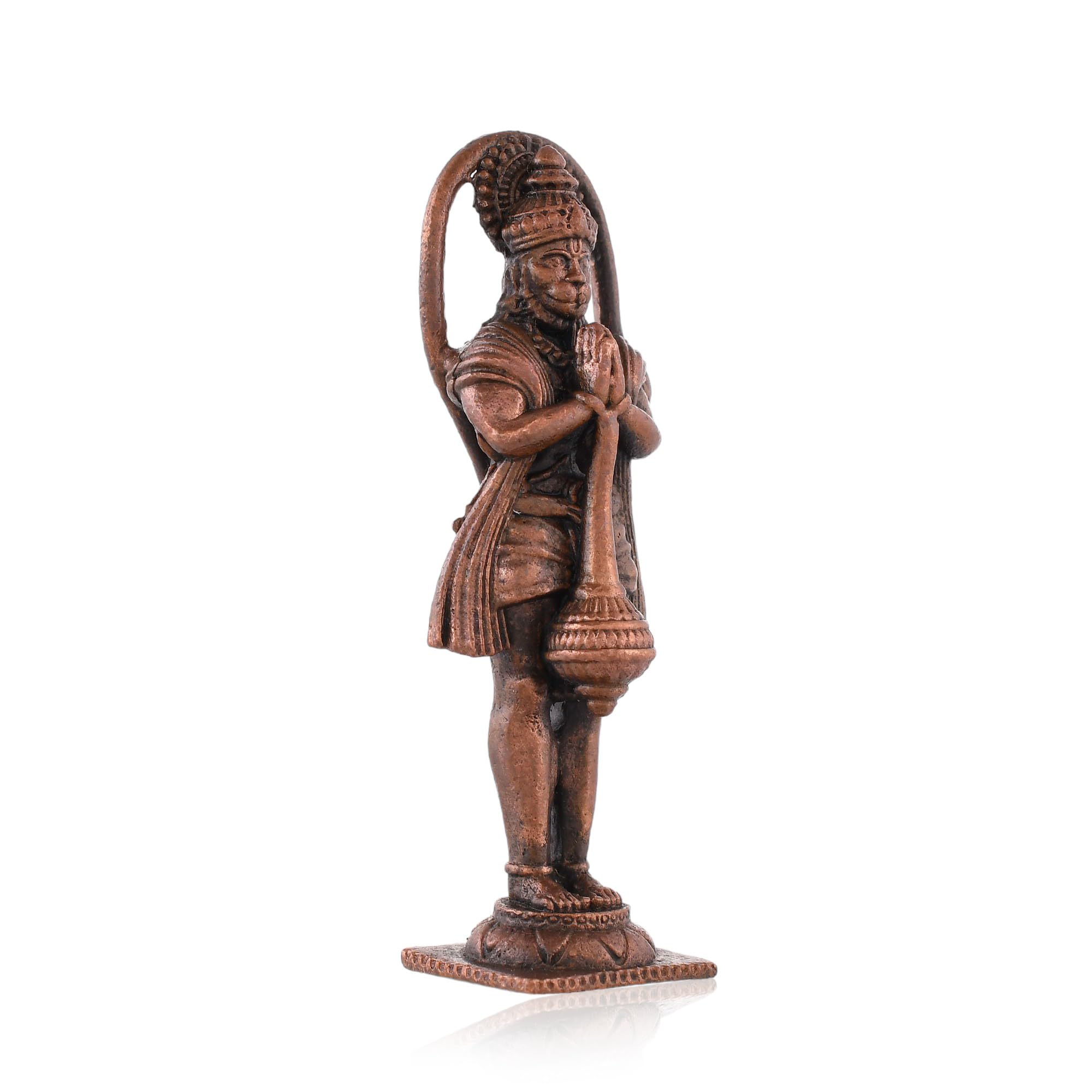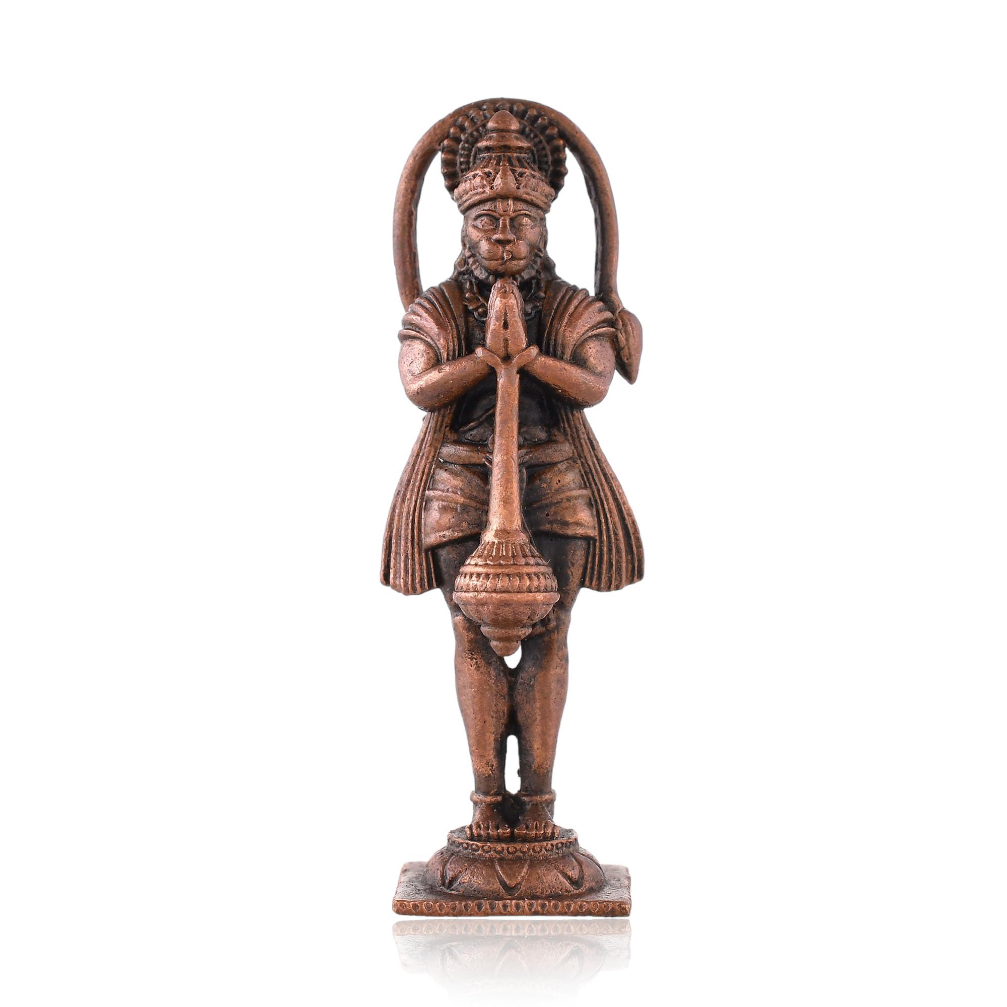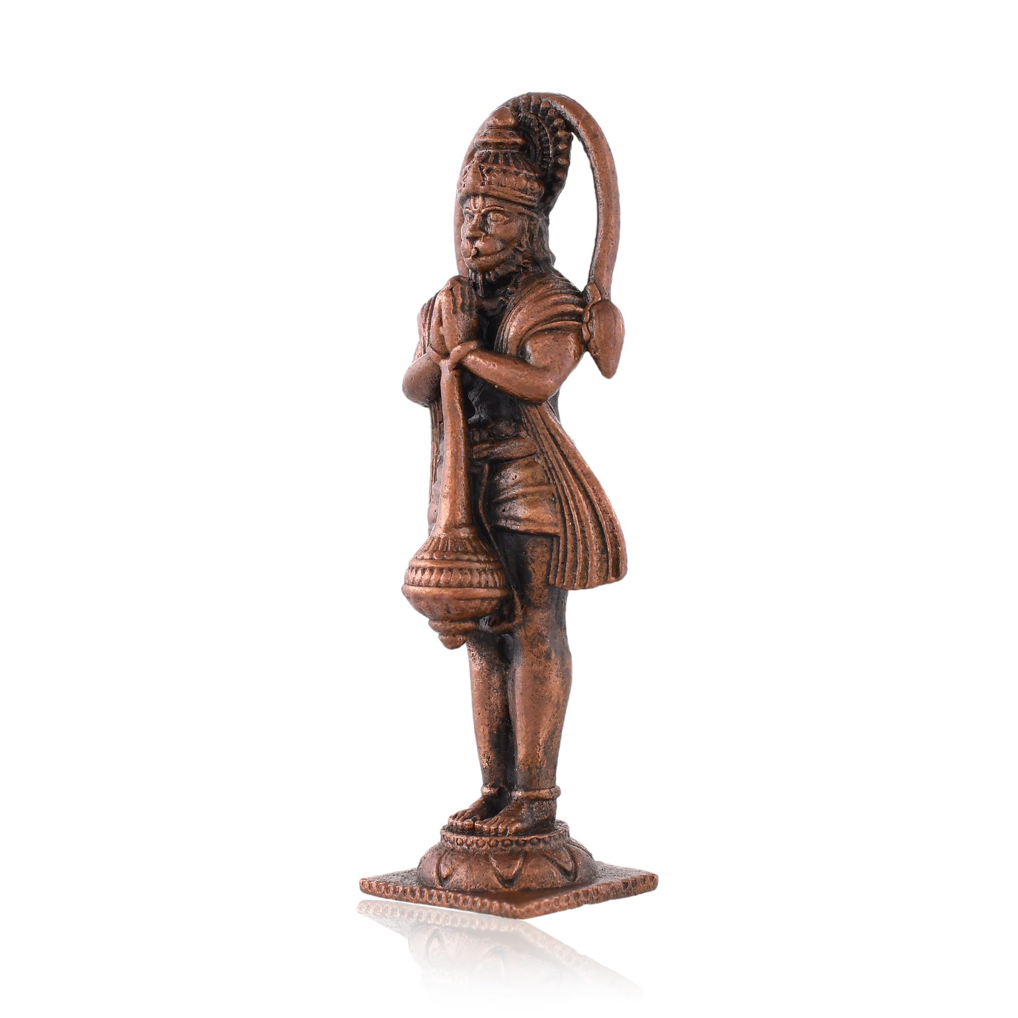 A beautifully crafted copper idol of Hanuman Ji is the perfect addition to any car dashboard office table or small temple. This exquisitely designed deity figurine captures the essence of devotion and strength making it an ideal symbol to adorn your space. The idol made from durable and resilient copper material ensures longevity and ease of maintenance allowing you to cherish its presence for years to come. Its intricate details and vibrant colors make this Hanuman Ji idol not just a decorative piece but also a source of inspiration and spiritual solace. The idol's small size is perfect for a car dashboard where it can serve as a constant reminder of faith and protection during your journeys.