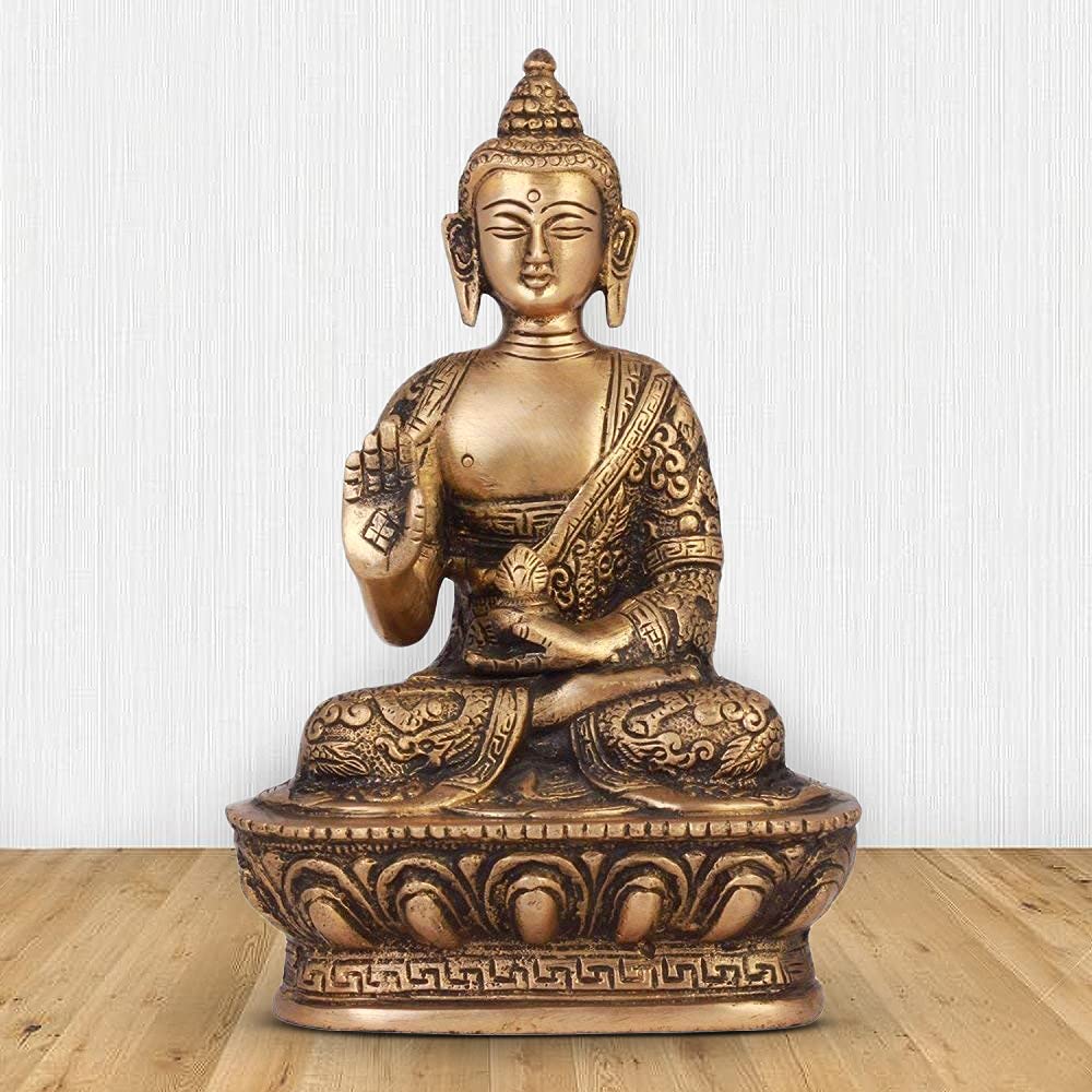Kartique Brass Blessing Gautam Buddha Statue for Living Room Decor in Gold Color Idol Height 7 Inch