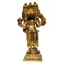 Trimurti (meaning three forms) is the triple deity of supreme divinity in Hinduism in which the cosmic functions of creation maintenance and destruction are personified as a triad of deities typically Brahma the creator Vishnu the preserver and Shiva the destroyer. The legendary yogi Dattatreya is often treated as not only one of the 24 avatars of Vishnu but also of Shiva and Brahma as well in a single three-headed body. This rare brass idol with fine craftsmanship brings this concept to life with each god depicted with their respective characterstics. Rare collectible item for display for for worship.