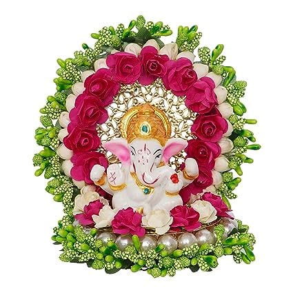 Sellplus Lord Ganesha Idol on Handcrafted Green Floral Plate God Idol for Home Decoration Ganesh Chaturthi
