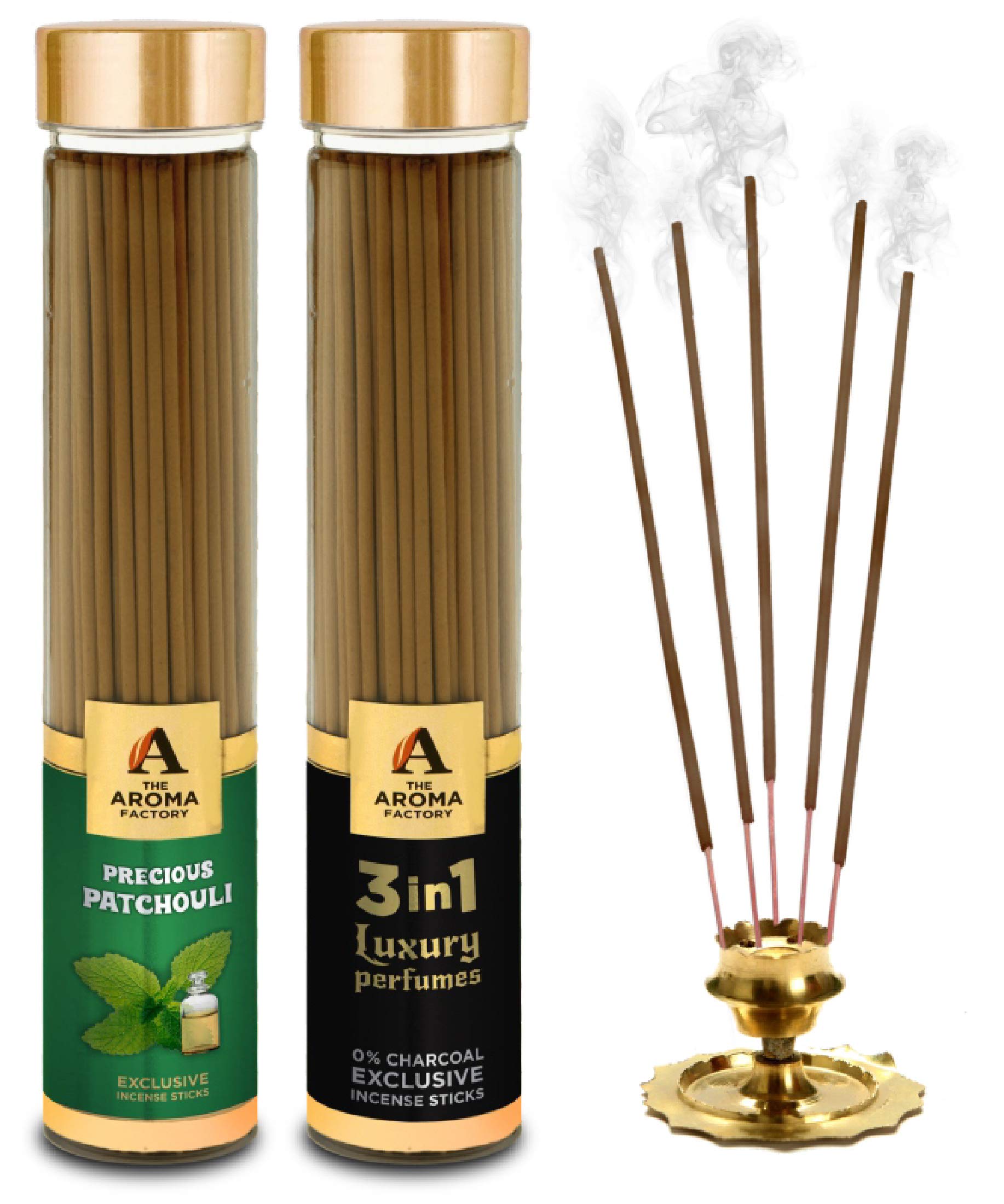 The Aroma Factory & 3 in 1 Agarbatti Incense Stick (Charcoal Free & Low) Bottle Pack of 2 x 100g