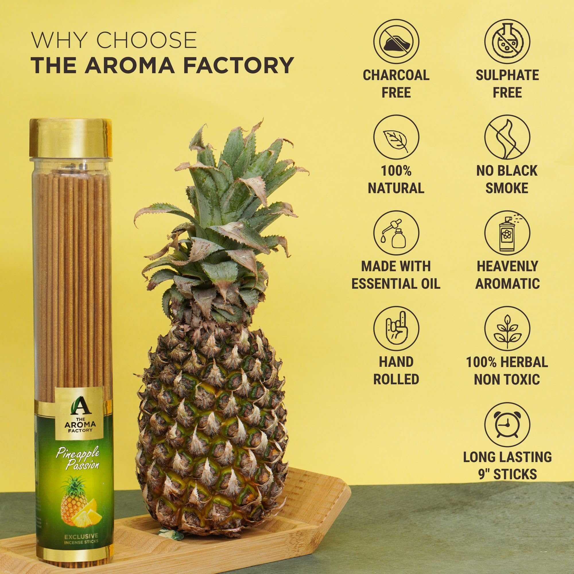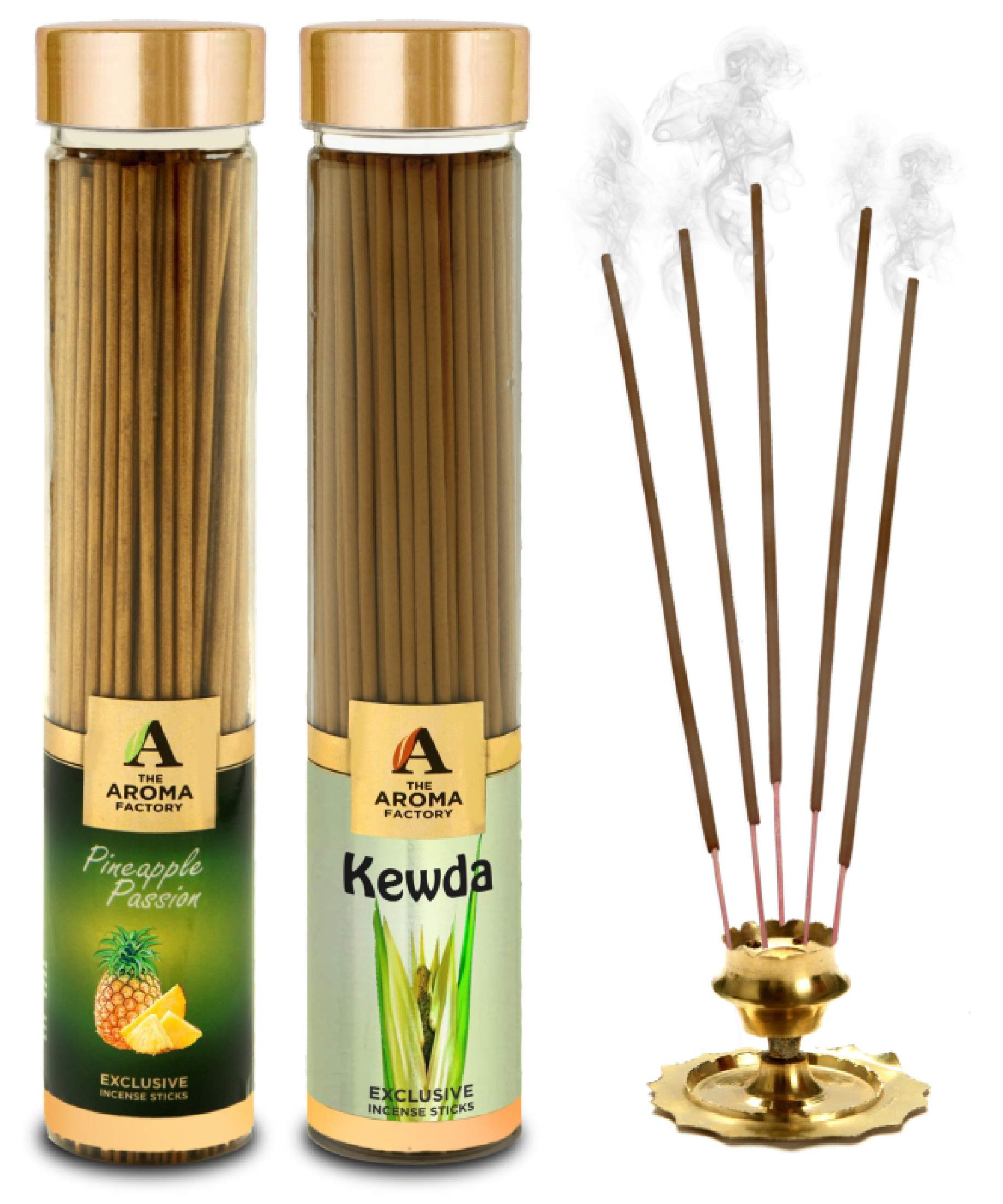 The Aroma Factory Pineapple & Kewda Agarbatti for PoojaLuxury Incense SticksNo Charcoal100% Herbal Fragrance Agarbathi (Bottle Pack of 2x100g)