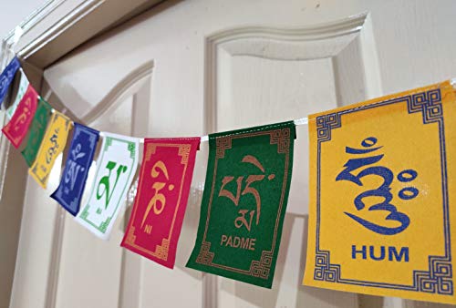 • The Mantra printed on the flags is Om Mani Padme Hum or Hung.