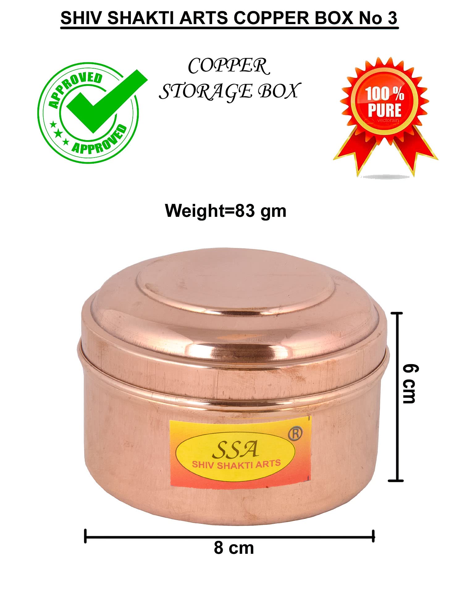 SHIV SHAKTI ARTS Pure Copper Box |Jewellery Box| Dibbi| Puja - Mandir Roli/Chawal/Chandan/Kumkum Puja Box/Dabbi-Size No 3 (1 PieceBrown)