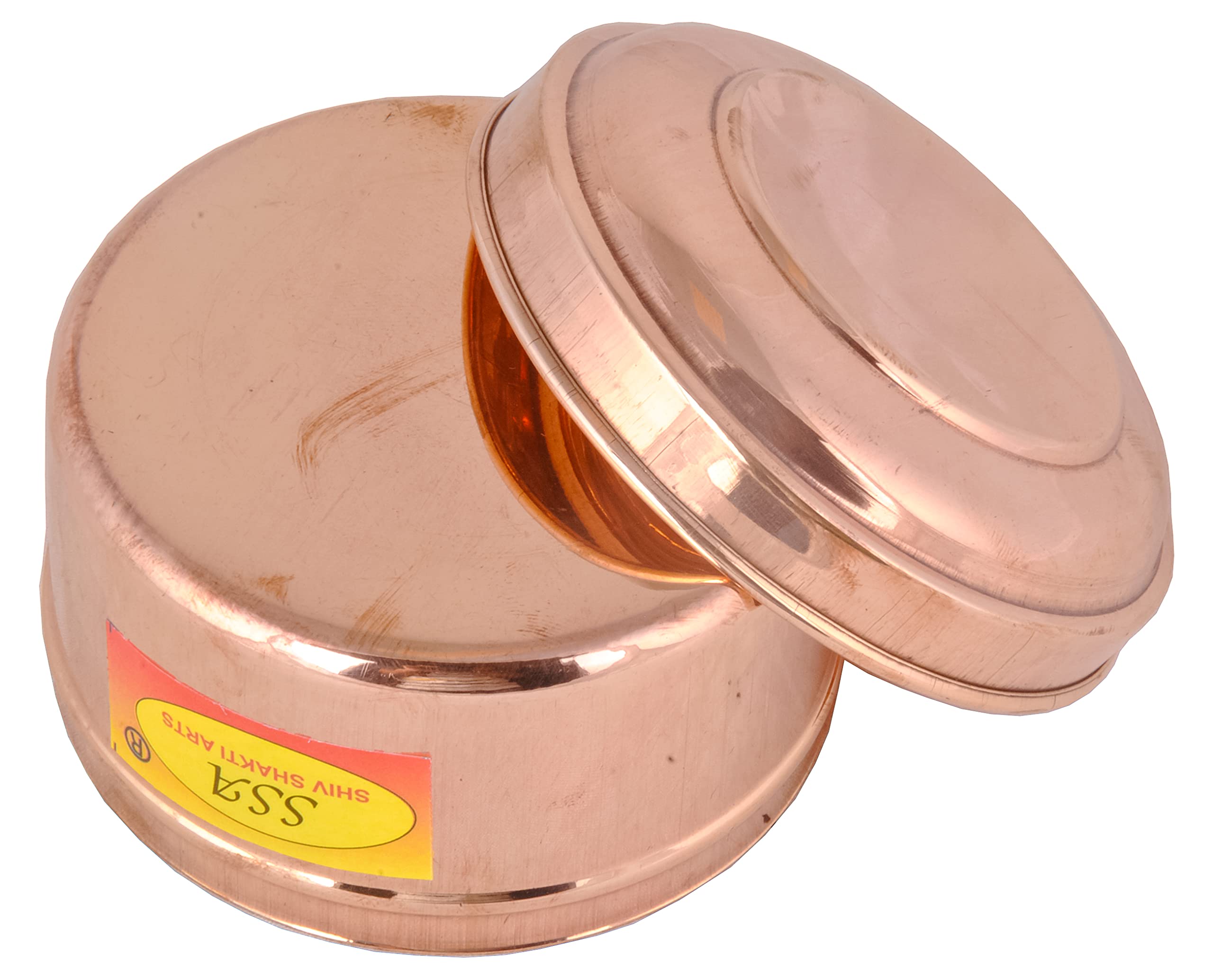 At this time when the world is riddled with Pollution our countrymen are using high potency tablets even for minor problems which is spreading poison in their bodies. Our Rishes/Sadhus Saints and even doctors have found a very easy method to deal with such disorders. The best remedy to overcome these problems is to store water in a copper utensil overnight and drink four glasses every morning. After this you can wash your mouth and brush your teeth. It is also advisable not to take tea for at least 45 minutes. Patients who cannot drink four glasses of water at a time can start with smaller quantity and increase the quantity gradually. There is no disease in the world which cannot be cured by this method. It is useful to drink water before sunrise for all including healthy persons. We request everybody to propagate this every morning whosoever is suffering from any diseases Care Tips a) Clean your copperware by hand and avoid dishwasher as the detergent can cause oxidation leading to permanent damage. b) Use a solution of equal quantities vinegar or lemon juice and salt diluted with some water at such times but don't use it regularly. c) Avoid scratchy cleaners like steel wool. d) A simple soft cleaning liquid on soap base hot water and a soft washing cloth is best for daily use. e) Use Copper Shining Powder for cleaning the copper utensils. Completely safe and gentle on hands. f) Copper Utensils Tarnish from time to time. This is Normal for an Authentic Copper utensils.