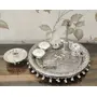 Traditional German Silver Coated Pooja Plate Set Every human being wants to have a Spiritual Connection with their Almighty and Prayer is the best way to have that Spiritual Connection. We try to make those prayers auspicious and as traditional as possible. Product Details: The Pooja Set is made of German Silver Coating and consists of all traditional items used in the Pooja. Benefits: German Silver is one of the materials that humankind has been using for some time. Keeping its benefits in mind and with advanced technology Usage: This Plate Set can be used while performing different Poojas on different occasions like Rakhi Karwa Chauth Diwali Pooja and other Pooja's. Cleaning: For cleaning use a soft sponge and liquid soap. German Siler will maintain its Glossiness. Preservation: German Silver is the friendliest metal in the environment and is easy to recycle making it the greenest natural metal. To make its life longer always dry them after washing with a cotton cloth and keep them in a dry place. If items are not in use store them at a dry place in a dry plastic bag.