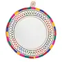 Color:Off White 6Ethnics of Kutch Leather Art PUNCH WORK Handicraft Mirror. Made out from the pure leather pattern is hand punched into leather sheer. Designed Punched Leather is Stitched on a board covered with beautiful vivid coloured patchworked cloth in back ground. Made out in vivid pattern this Cut Work Leather Art is mastered by artisans of Kutch over the generations. This Leather Craft Mirror is very unique piece of art as it requires very trained hand to produce beautiful designs without aid of machines and requires variety of punches to produce them. This Kutch Handicraft Decorative Art will is perfect piece for your own ethnic India Art collection or gift