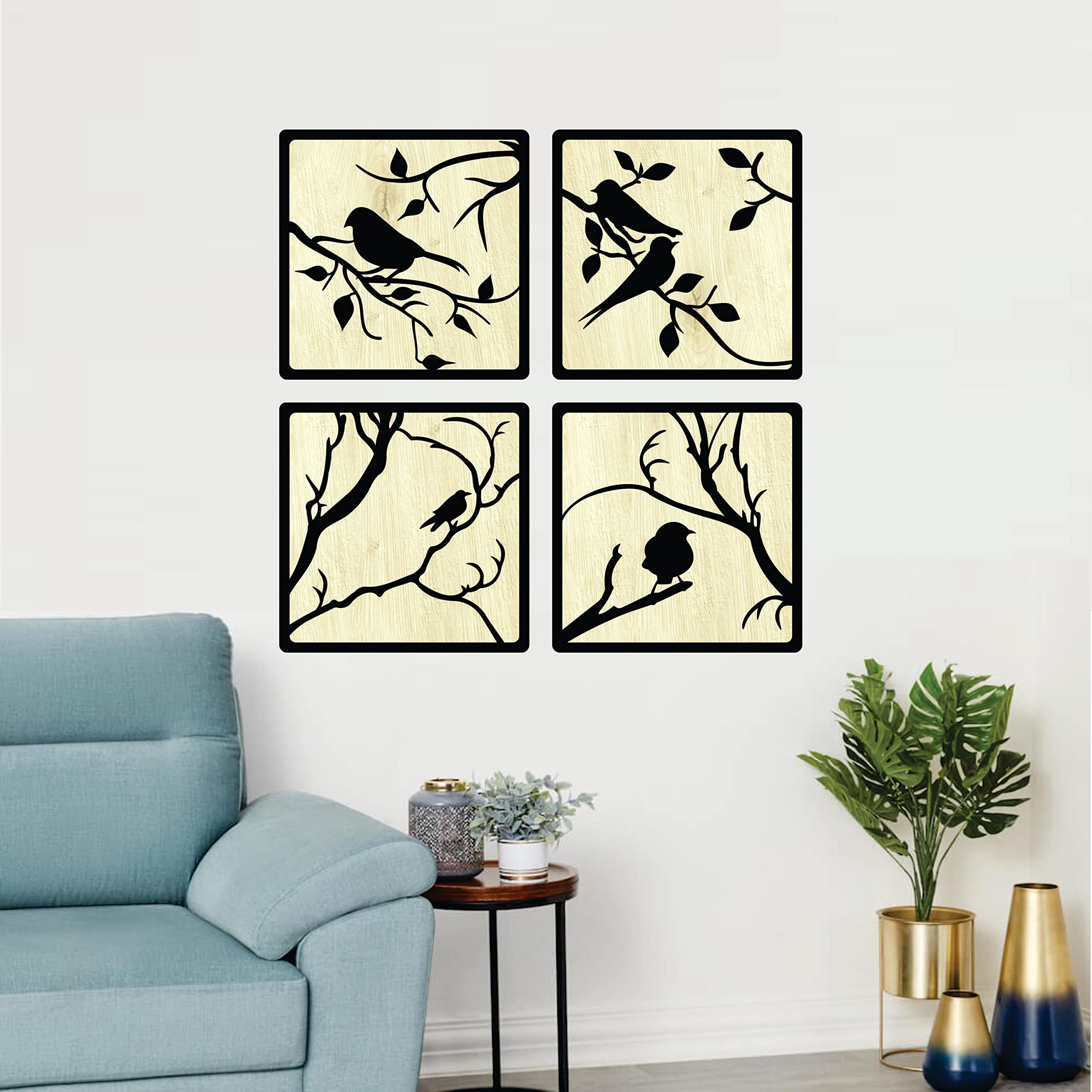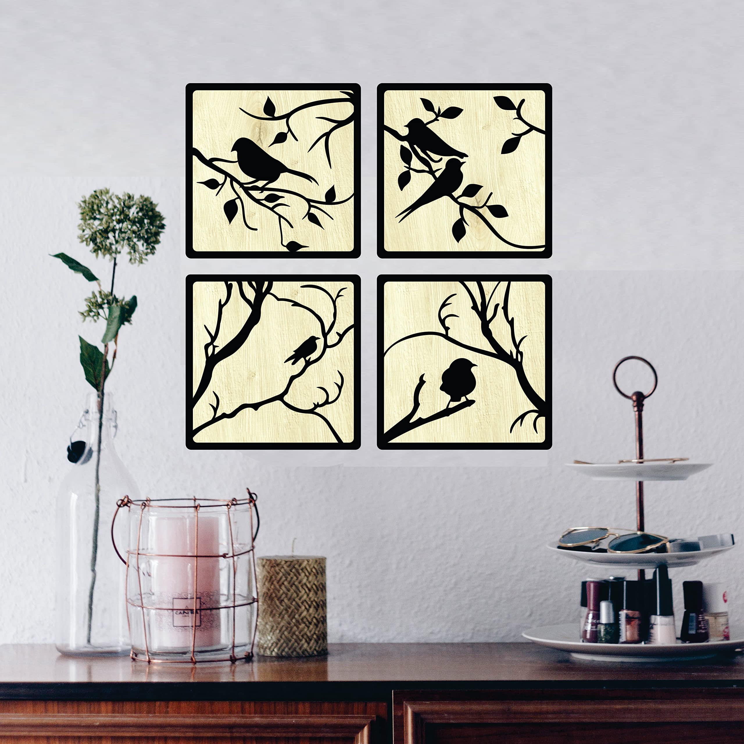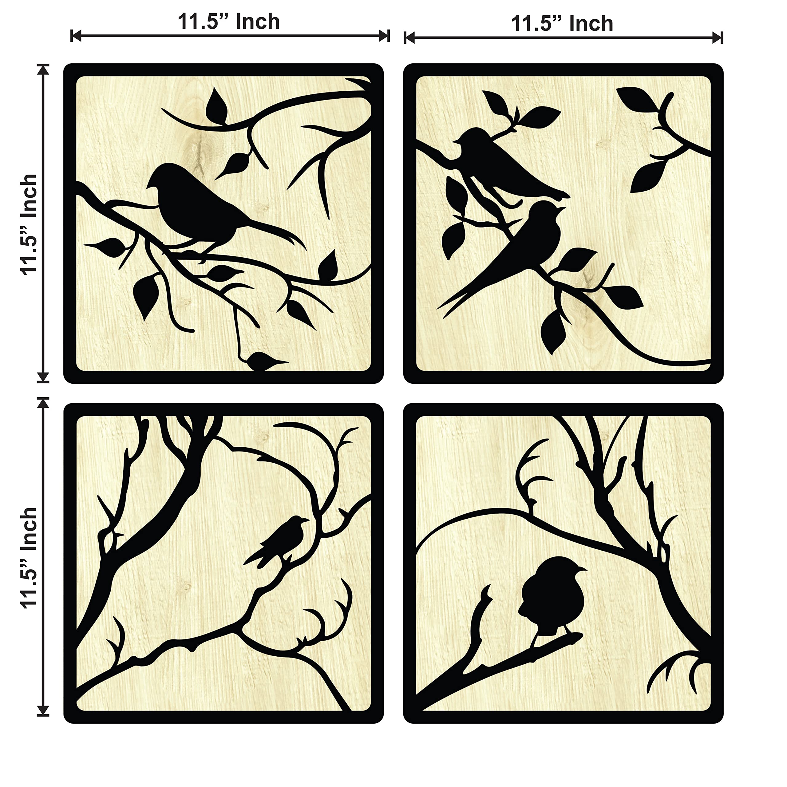 Creative Arts n Frames 11 x 11 inch Wooden Wall Decor Art Self Adhesive Wall Decorative for Living Room Office Drawing Room Bedroom Interior Design Items (Bird Scenry 4 Set of 4 11x11 Wall decor)