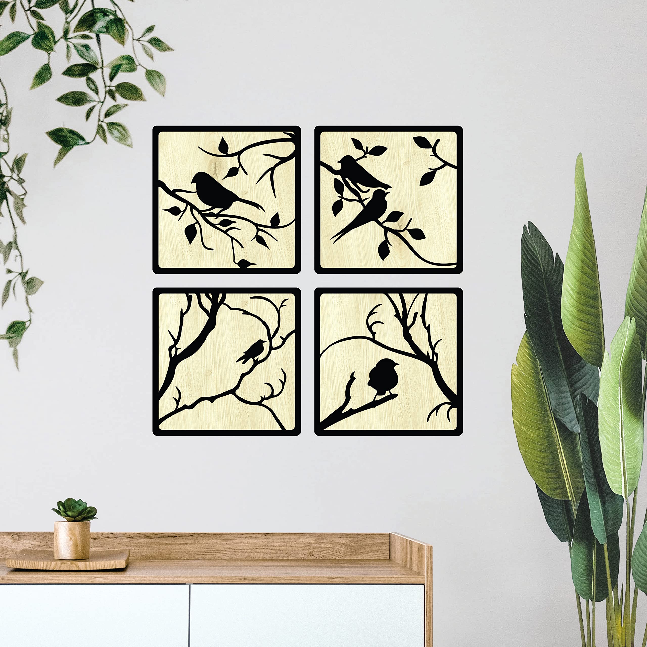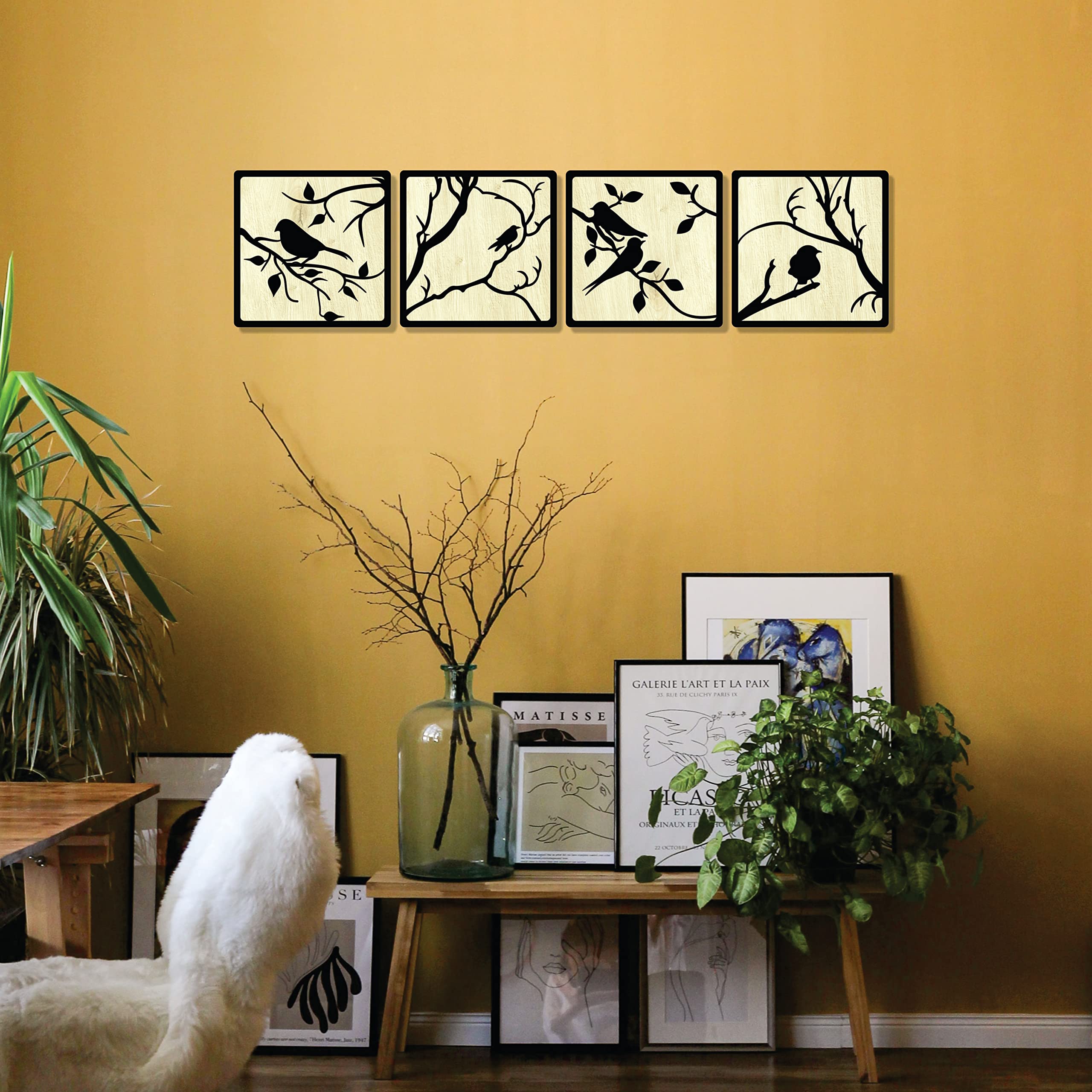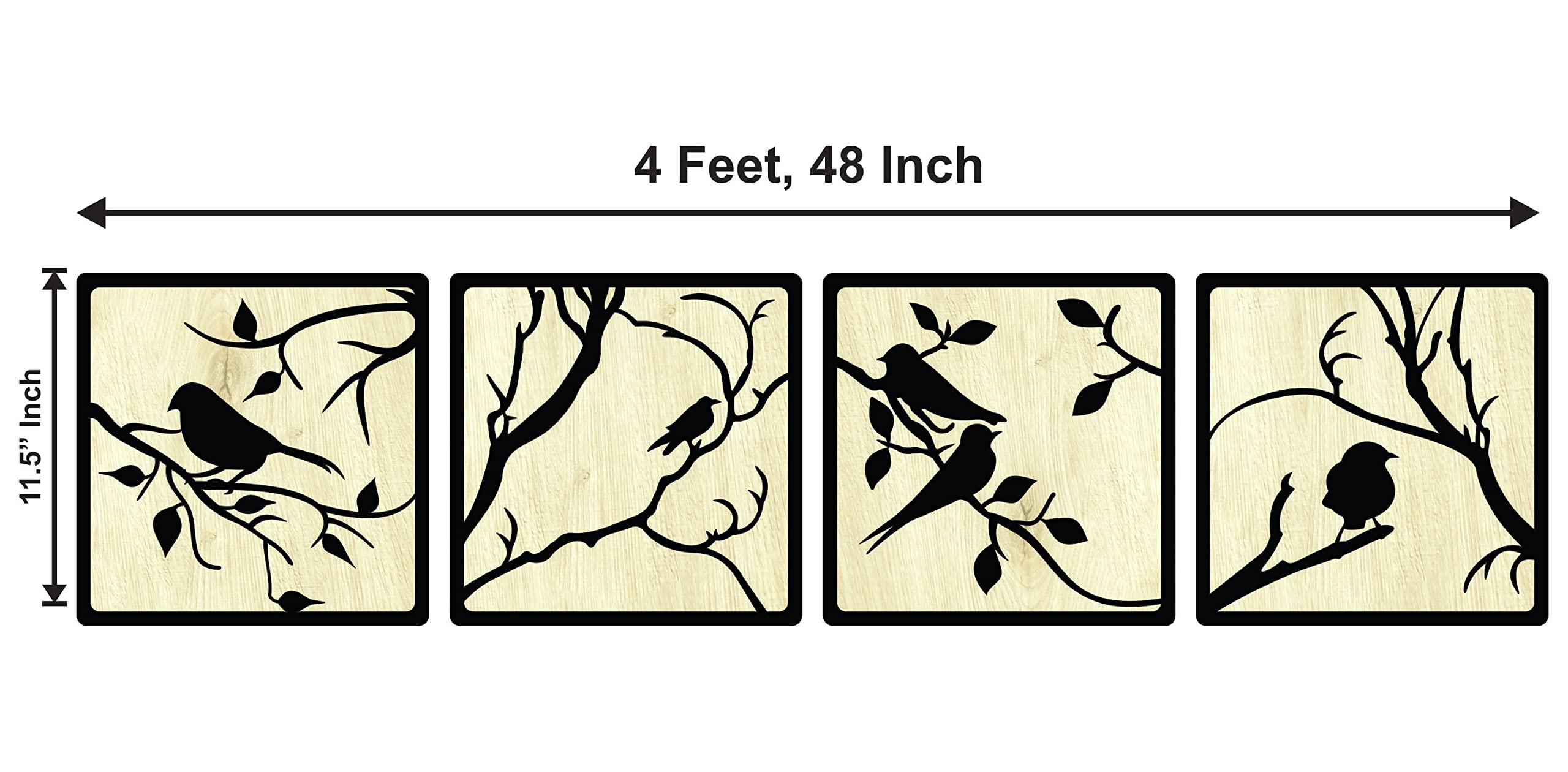 Creative Arts n Frames 11 x 11 inch Wooden Wall Decor Art Self Adhesive Wall Decorative for Living Room Office Drawing Room Bedroom Interior Design Items (Bird Scenry 4 Set of 4 11x11 Wall decor)