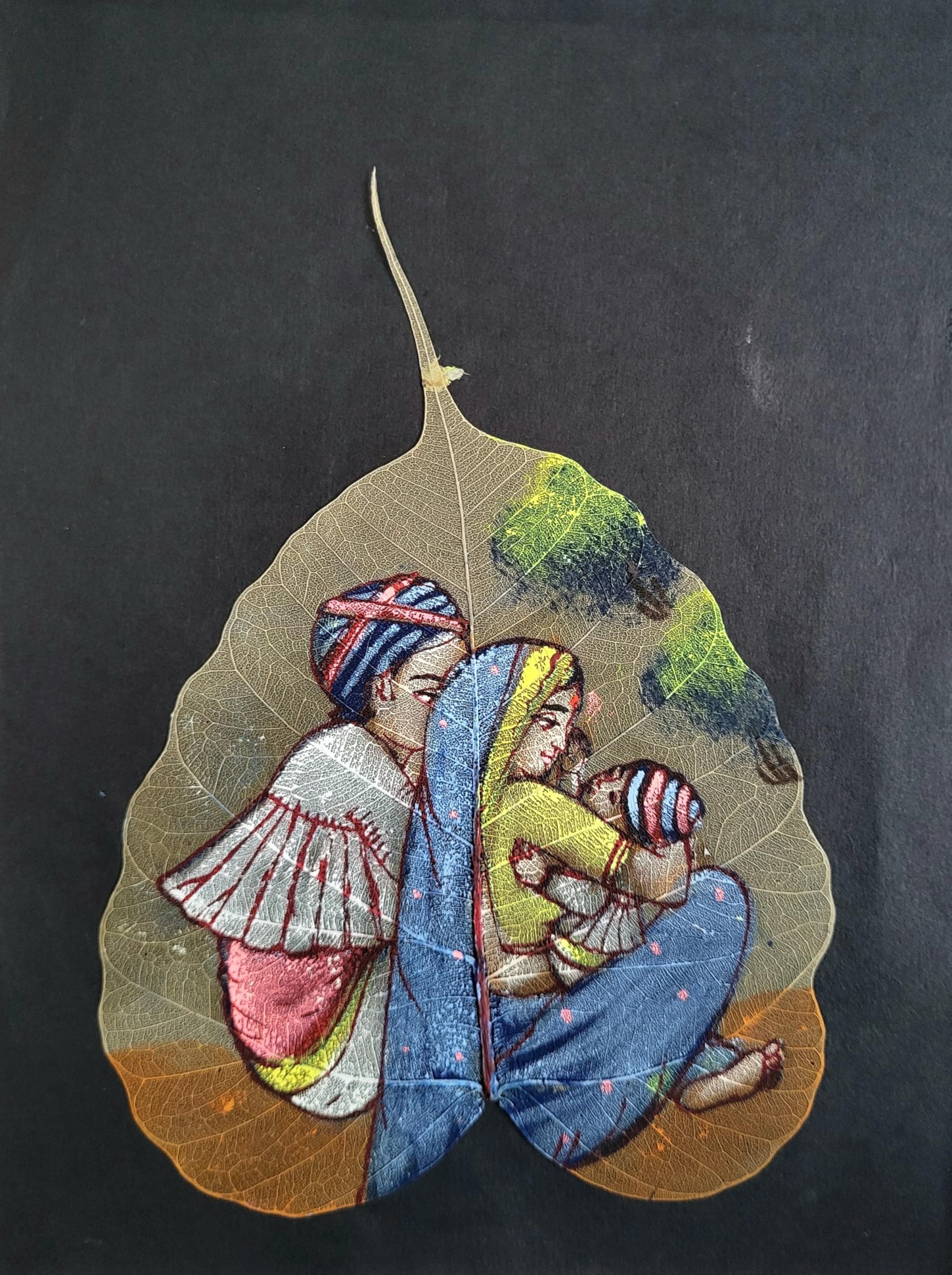 Handmade Indian Leaf Painting - Romantic Couple Portrait - Pipal Leaf Art (9 * 6.5 inch) (Unframed) (3)