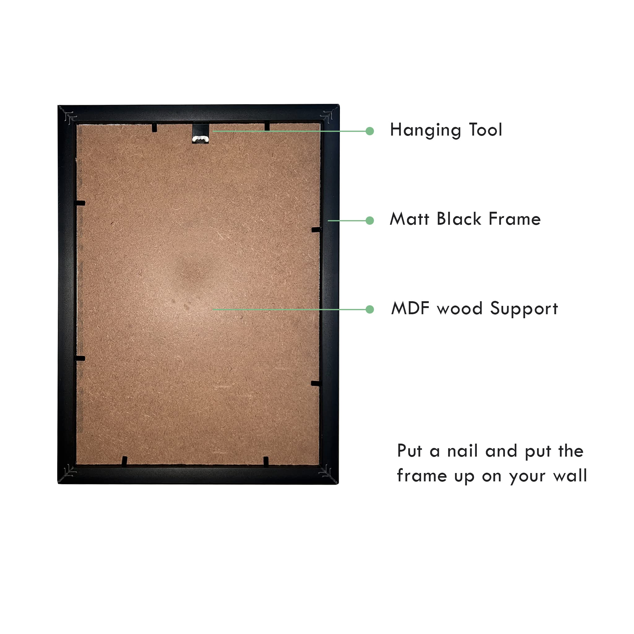 Elevate your space with our premium wall poster printed on high-quality IRIS paper to ensure a smooth finish that fits perfectly in any frame. This poster is easy to clean and maintain keeping your decor vibrant and fresh. Utilizing advanced printing technology it brings out rich vibrant colors that will brighten any wall and add a lively touch to your decor making it a standout piece in any room. Designed for versatility this wall art is perfect for any setting whether it be living rooms bedrooms kitchens offices hotels dining rooms bathrooms bars and more. It a thoughtful gift for art lovers decorators designers family and friends. This elegant wall art is a multifunctional decor piece suitable for homes and offices as well as hostels study rooms classrooms corridors shops and cafes. Wherever you place it this poster enhances the ambiance and adds character to the space. Our frames are designed for easy reuse allowing you to refresh your decor effortlessly. Simply remove the MDF wood board and replace it with a new poster or photo of your choice. Transform your space and inspire positivity with our high-quality vibrant wall art.